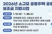 (비전21뉴스) 안양시가 안전하고 쾌적한 주거환경 조성을 위해 ‘2026년 소규모 공동주택 공용시설물 보조금 지원사업’을 추진한다고 12일 밝혔다. 지원 대상은 건축법에 따라 사용승인 후 10년이 경과된 관리주체가 없는 소규모 공동주택의 공용 시설물이다. 지원 대상 사업은 ▲옥상 공용부분 및 지하주차장 방수공사 ▲재해·재난 발생 우려가 큰 위험시설 보수 ▲하수관 교체·보수 및 준설 ▲단지 내 차도 및 보도 보수 ▲장애인·노인·임산부 편의시설 설치 및 보수 등이다. 신청 기간은 이달 30일까지로, 안양시 공동주택 지원심사위원회의 심의를 거쳐 대상지가 선정되면 올해 5월부터 각 단지별 공사에 착수할 수 있다. 지원금액은 총 사업비의 50~90%이며, 단지당 최대 2000만원 이내이다. 더 자세한 내용은 시청 홈페이지의 새소식이나 고시공고, 건축과를 통해 확인 가능하다. 이번 사업은 관리주체가 없어 관리의 사각지대에 놓인 노후 소규모 공동주택의 공용시설물 보수·관리를 지원함으로써 주거환경을 개선하고 안전사고를 예방하기 위한 것으로, 2017년부터 9년째 시행되고 있다.