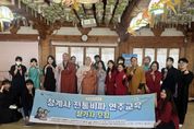 (비전21뉴스) 의왕시가 천년고찰 청계사에서 4월 18일, ‘신중도 속 비파천인들’ 교육 수료식을 개최했다. 국가유산청의 ‘전통산사 국가유산 활용 공모 사업’으로 진행된 ‘신중도 속 비파천인들’은 청계사 극락보전 내 신중도(경기도 유형문화유산)에서 볼 수 있는 우리나라 전통악기 ‘비파’를 배우는 연주자 양성 교육으로, 2022년부터 올해까지 총 56명의 수료생을 배출했다. 올해 프로그램은 2월 28일부터 4월 18일까지 총 8회, 16시간에 걸쳐 진행됐으며, 13명의 수료생이 교육을 마쳤다. 이날 수료생들은 관람객을 대상으로 연주 발표회를 열고 그동안 갈고닦은 실력을 마음껏 선보이며, 전통음악의 아름다움을 전하는 시간을 가졌다. 이들은 향후 청계사와 지역 행사 등에서 비파 연주자로 활동할 예정이다. 김성제 시장은 “의왕의 대표 국가유산인 청계사에서 진행된 이번 비파 연주자 양성 교육을 성실히 이수하고 수료하시게 된 것을 진심으로 축하드린다”며 “앞으로 지역을 대표하는 비파 연주자로서 의왕과 국가유산의 가치를 널리 알리는 활발한 활동을 기대한다”고 밝혔다.
