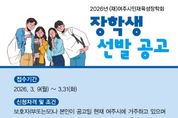 (비전21뉴스) (재)여주시인재육성장학회는 ‘2026년 여주시인재육성장학회 장학생 선발공고’를 여주시인재육성장학회 홈페이지 및 여주시청 홈페이지에 게시했다 올해 선발인원은 입학우수 36명, 우수 149명, 특기우수 38명, 여주장학생, 재해구호장학생등 5개 분야 223명이며, 조건에 맞는 분야를 선택하여 지원 하면 된다 장학생 신청 접수는 3월 9일부터 3월31일까지로 방문, 우편 또는 온라인 접수가 가능하고, 장학생 선발 및 장학증서 수여식은 5월에 실시할 예정이다.