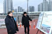 (비전21뉴스) 구리시는 3월 6일 갈매지구 주민들의 주요 통행로인 ‘갈매천 자전거도로 연결 교량’을 방문해 시설물 안전 점검을 했다. 해당 교량은 갈매동 6-2번지 일원에 설치된 길이 42m, 폭 4.6m 규모의 합성형 라멘교 형식 자전거·보행자 겸용 교량이다. 기존 갈매천 자전거도로와 남양주시 용암천 자전거도로를 연결하고 별내역을 접근할 목적으로 설치한 교량이다. 그동안 갈매천 자전거도로가 용암천 구간과 단절되어 있어, 자전거를 이용해 갈매동과 별내동을 오가는 주민들이 불편을 겪어왔다. 이에 시는 2022년 7월 사업 추진계획을 수립하고 특별조정교부금 8억 원을 포함한 총 14억 5천만 원의 예산을 투입해 공사를 진행했다. 개통 이후 갈매지구 주민들의 별내역 접근성이 크게 개선되며 지역의 주요 생활 기반 시설로 자리 잡고 있다. 이번 점검은 개통 이후 시설물의 노후화 및 파손 여부를 선제적으로 확인하기 위해 마련됐다. 백경현 시장은 교량 바닥면 마모 상태와 난간 등 안전시설을 세밀히 살피며 보행·자전거 이용 환경 전반을 점검했다. 백경현 구리시장은 “시민들이 일상에서 체감하는 기반 시설일수록 지