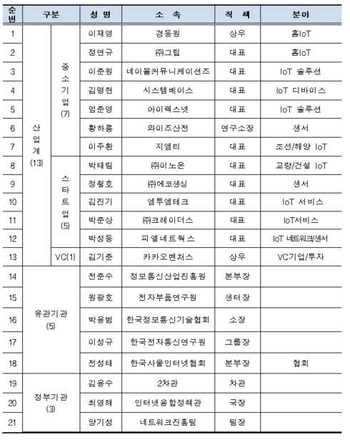 또한, 타 산업과 융합이 활발히 일어나고 있는 사물인터넷이 지능형 사물인터넷으로 진화하면서 산업 전반의 가치사슬을 새롭게 변화시킬 것이라고 전망하며, 국내 지능형 사물인터넷 기술경쟁력 확보를 위해 정부의 정책적·제도적 지원이 필요하다는데 공감대를 형성했다.