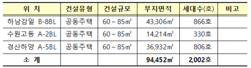 이번 공공지원 민간임대주택 택지 공모 지역 3곳의 구체적인 현황은 다음과 같다.