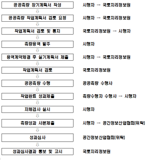 국토교통부 국토지리정보원은 그간 각종 시범사업을 통해 드론 영상을 기반으로 영상지도, 수치지도 등 공간정보의 제작기준을 마련하고 측량 정확도를 점검해 드론 측량 도입을 추진해 왔으며, 드론 측량 신기술 도입을 통해 공공수요를 창출해 드론산업과 공간정보 활성화에 기여함과 동시에 엄격한 품질관리를 통해 공공측량의 신뢰성을 유지할 수 있는 작업기준과 성과심사기준을 마련했다.