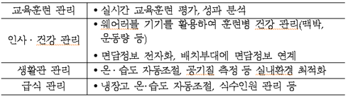 첨단 ICT 기술을 기존 체계에 융합해 스마트한 병영환경을 조성한다.