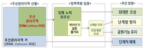 우선관리지역에 해당하지 않는 지역에 대해서는 토지 소유자의 재산권 보호를 위해 불요불급한 시설은 해제가 이루어질 수 있도록 하고, 다만, 불가피하게 공원에서 해제된 지역은 국토교통부, 지자체 등 관계기관 합동으로 시장 상황을 조사하는 등 부동산 투기 방지 대책을 마련·시행할 계획이다.