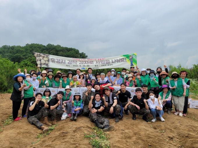 20일 과천시에 따르면, 과천시 새마을협의회와 새마을부녀회 회원과 김종천 과천시장, 국가안보지원사령부 장병 등 70여 명은 선바위역 인근 경작지에서 감자 1600kg을 수확했다.