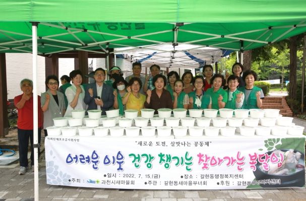 신계용 과천시장도 각 동 행사장을 돌며 이웃을 위해 행사를 준비해 준 주민들에게 “지역에 관심과 사랑이 필요한 우리 이웃을 위해 정성을 들여 삼계탕을 준비해주셔서 감사하다”라고 고마움을 전했다.