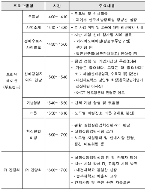앞으로 창업탐색팀은 선배 창업가와의 만남과 팀간 네트워킹으로 구성된 부트캠프를 시작으로 미국 NSF와 연계한 현지 수요 고객층 발굴을 중심으로 한 국내외 실전 창업 교육, 전문가와의 일대일 멘토링 및 시제품 제작 지원을 통해 창업 계획을 확정하는 본격 창업레이스에 돌입한다.
