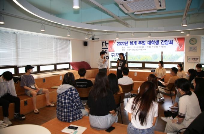 (비전21뉴스) 과천시가 27일 청년공간 ‘비행지구’에서 ‘2022년도 하계 행정체험 아르바이트’에 참여한 대학생들과 시정 운영 및 시의 청년정책 관련 의견 수렴을 위한 간담회를 개최했다.