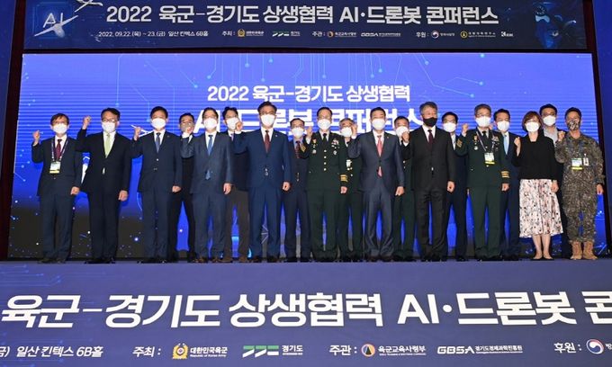 (비전21뉴스) 인공지능과 드롯본 최신동향을 공유하고 경기도와 육군의 상생 방안을 모색하는 ‘2022 경기도-육군 상생협력 인공지능․드론봇 콘퍼런스’가 22일 개막식을 시작으로 23일까지 이틀간 고양 킨텍스 제2전시장 6홀에서 열린다.