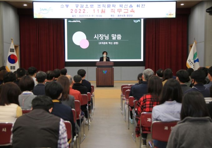 (비전21뉴스) 신계용 과천시장은 지난 2일 시청 대강당에서 열린 직무교육 자리에서 최근 발생한 이태원 사고와 관련하여, “시에서 추진하는 사업과 행사에서는 시민의 안전 확보를 최우선의 가치로 삼아야 할 것”이라고 강조했다.