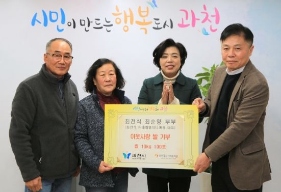 7일 과천시에 따르면, 최천식·최순향 부부(갈현동)가 10kg 쌀 100포를 과천시에 기부했다.