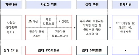 ‘혁신성장분야 사업화’는 100개사를 대상으로 추진하며, 참여기업은 사업모델 개선, 제품 및 서비스 고도화 등에 필요한 자금을 최대 1억 5천만원을 지원 받을 수 있으며, ‘성장촉진 프로그램’은 500개 창업기업을 대상으로 글로벌 진출, 기술이전, 디자인 강화 등을 최대 5천만원을 지원한다.