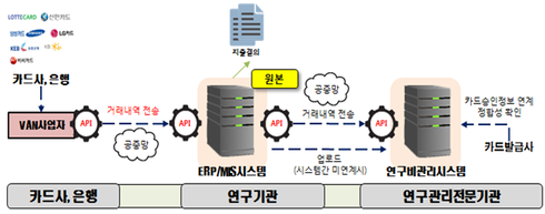 내년부터는 ‘연구비통합관리시스템’을 정부R&D를 수행하는 상당 부분 연구기관의 회계시스템과 연결하여 각 연구기관의 회계시스템에 저장되는 신용카드 거래정보, 전자세금계산서 정보 등과 신용카드사, 국세청 등의 정보를 손쉽게 비교 체크할 수 있게 된다.