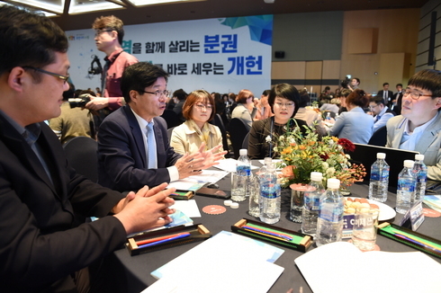 전국 기초자치단체 가운데 처음으로 시작한 ‘500인 원탁토론’은 각계각층 시민, 수원시장을 비롯한 공무원 등 500명이 한자리에 모여 토론을 하고, 현장 투표로 정책과제를 도출하는 것이다.
