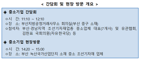 한편 조선기자재 업체 대표들은 공정위 노력으로 불공정 관행이 일부 개선되었음을 인정하면서도, 여전히 미흡한 점들이 있다면서 공정위의 지속적인 관심과 노력을 요구했다.