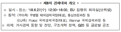 한-EU 경제대화는 지난 2010년 5월 체결한 한-EU 기본협정에서 경제 분야의 대화와 협력을 강화하기로 합의함에 따라 양측이 번갈아 가며 매년 개최하고 있다.