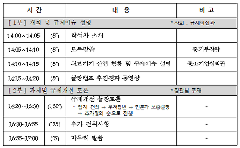 한편, 중기부 홍종학 장관은 “금번 토론과정에서 해결되지 않은 과제는 옴부즈만 규제DB에 등록하고 지속적으로 관리하여 해결해 나가는 한편, 혁신성장에 걸림돌이 되는 규제를 발굴하여 오늘과 같은 분야별 끝장캠프를 지속적으로 추진할 계획이다“고 밝혔다.