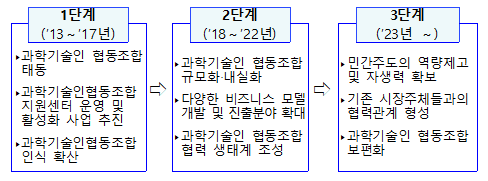 먼저, 기존 과기협동조합의 발전을 위하여 대학·대기업 등이 참여하는 매머드급 과기협동조합을 육성하고, 연 10여개 우수사례 발굴·표창 등을 통해 과기협동조합의 성공스토리를 확산한다.