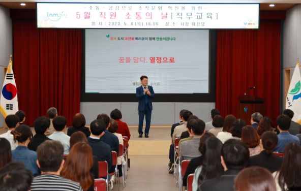 (비전21뉴스) 과천시는 4일, 시청 대강당에서 열린 직원 소통의 날에 송외동 행정안전부 국회과장을 초청해 ‘꿈을 담다. 열정으로’라는 특강을 실시했다.