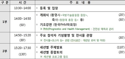1부에서는 최주호 한국PHM학회장이 ‘건전성 예측과 관리를 이용한 4차 산업혁명 시대의 전순기 품질경영 방안’을 주제로 기조강연을 한다. 2부에서는 전차·장갑차, 자주포·다련장, 전술차량, 소구경화기, 4차 산업혁명과 국방 등 5개 세션으로 나눠 총 25개의 주제발표가 진행된다.