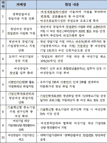 중소벤처기업부와 여성가족부는 여성 취업과 창업을 활성화해 국가경쟁력을 강화할 수 있도록, 23일 이 같은 내용이 포함된 협업과제 10개를 선정해 발표했다.