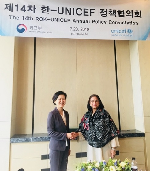 또한, 지난해 4월 UNICEF 서울사무소가 정식 개소하여 아동 보건, 교육, 식수위생, 영양 등 다양한 분야에서 우리 정부와 UNICEF간의 협력사업 발굴과 이행에 기여하고 있음을 평가했다.