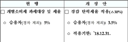 이번 개정안은 하반기 소비활성화 차원에서 승용차 개별소비세율을 지난 7월19일 부터 오는 12월31일 까지 한시적으로 5%에서 3.5%로 인하하는 내용이다.