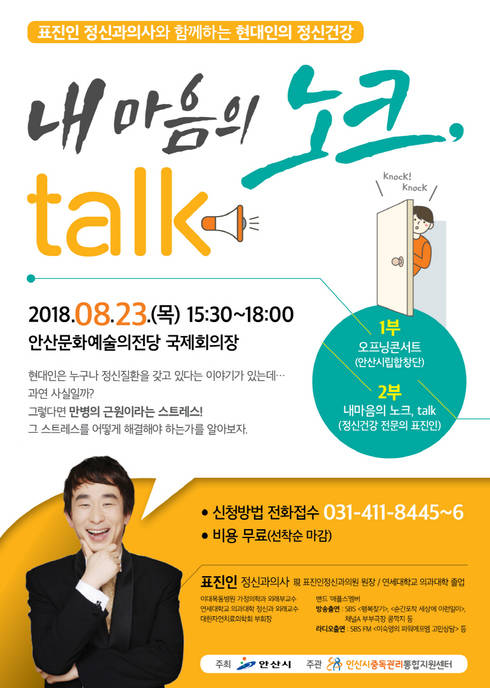 이번 강좌는 ‘내 마음의 노크, talk’라는 주제로, 표진인 정신과 의사를 모시고 현대인의 정신건강과 스트레스 해소에 대한 내용으로 진행된다.