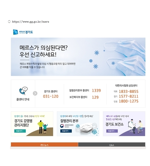 이밖에도 ‘경기도 메르스’를 검색하면 바로 감염병 정보를 확인할 수 있도록 하라는 이 지사의 지시에 따라 경기도 홈페이지에 메르스 바로가기 메뉴를 신설하고, 포털사이트 검색 시 경기도 메르스 홈페이지가 가장 상단에 노출되도록 조치했다.