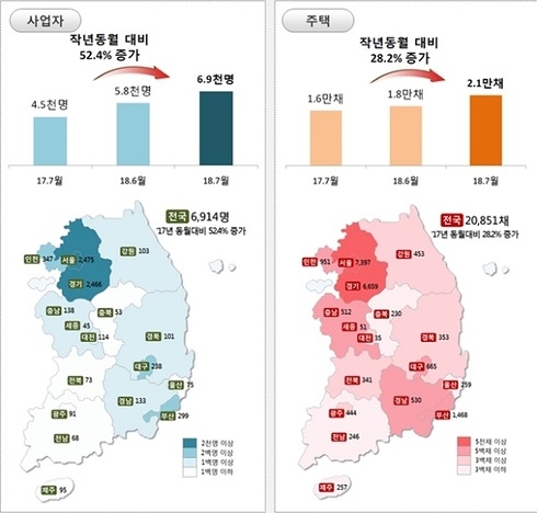 2018년 7월 한 달간 증가한 등록 임대주택 수는 20,851채로, 전월 등록분에 비해 18.7% 증가하였으며, 7월까지 등록된 누적 임대주택 수는 누계로 총 117.6만채로 집계됐다.