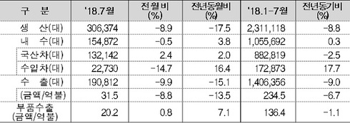 산업부 관계자는 8월의 경우 파업 등 큰 변수가 없는 한 현대차 등 주요 완성차 기업들의 생산 계획상 전년 동월 수준 이상일 것으로 전망했다