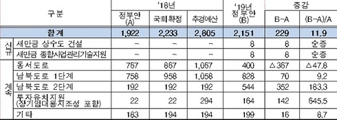 새만금 내부 십자형 주간선도로인 남북도로의 차질 없는 추진을 위해 1단계, 2단계 구간은 ‘18년 정부안보다 각각 70억 원, 352억 원이 증액됐다.