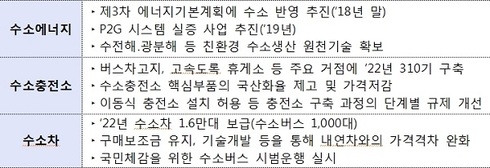 아울러, 혁신성장 가속화를 뒷받침하는 3대 전략투자 분야 중 하나로 선정된 수소경제 사회 조성을 위해서도 생산·저장·이송·활용 등 단계별 수소산업 공급망 구축과 수요 기반 확충을 적극 추진할 계획을 밝혔다