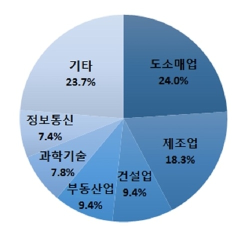 60세 이상의 법인 설립은 도·소매업(↑76개, ↑54.3%), 전기·가스·공기공급업(↑60개, ↑81.1%), 부동산업(↑45개, ↑42.9%)을 중심으로 증가했다.