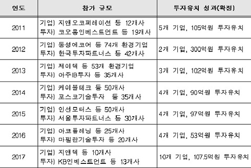 이들 환경기업은 유치한 투자금을 바탕으로 기술 사업화 촉진 및 기업경쟁력 강화 등에 주력할 예정이다.