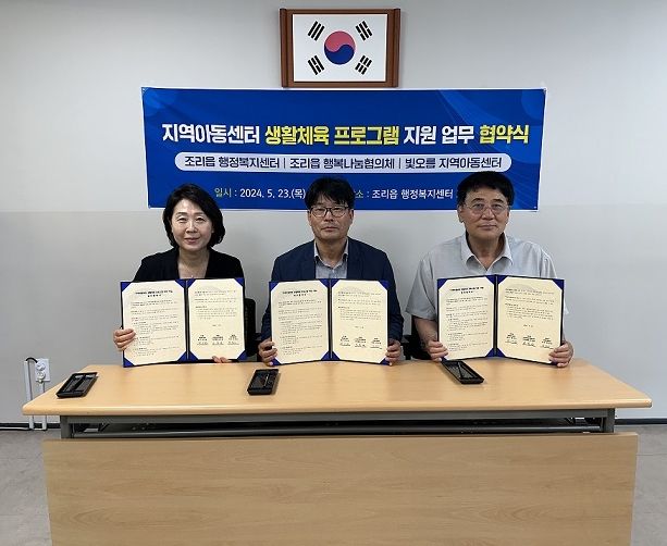 봉상균 조리읍장은 “이번 협약이 관내 아동들의 복지사각지대를 최소화하고 지역사회의 보호 체계가 강화되는 계기가 되길 바란다”라며 아동들이 건강하고 밝게 성장할 수 있도록 다양한 사업을 확대해 나가겠다“라고 밝혔다.