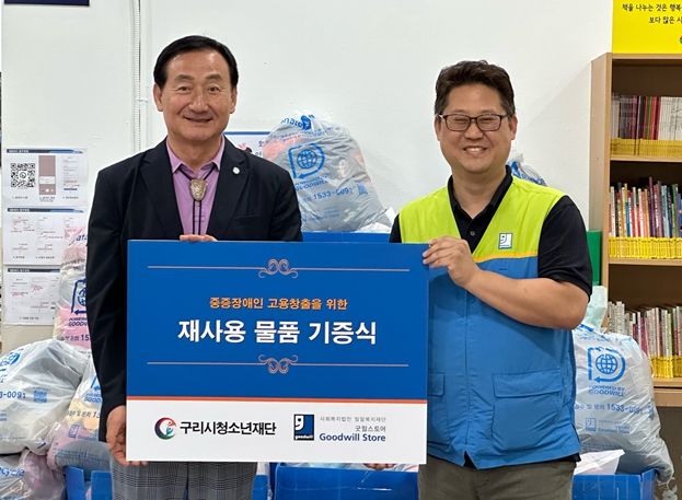 (비전21뉴스) 구리시청소년재단은 5월 22일 사회공헌활동 일환으로 굿윌스토어 구리점과 함께 ‘재사용 물품’ 기증식을 진행했다.