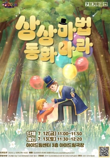 (비전21뉴스) 오산아이드림센터는 관객 참여형‘상상마법 동화나라’공연을 7월 12일, 13일 총 2회 진행한다.