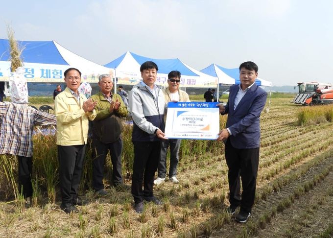 (비전21뉴스) 쌀전업농 화성시연합회는 8일 장안면 장안리 일대에서 ‘도시민과 함께하는 친환경 수향미 수확 체험’을 개최하고 수향미 400kg을 화성시에 기부했다