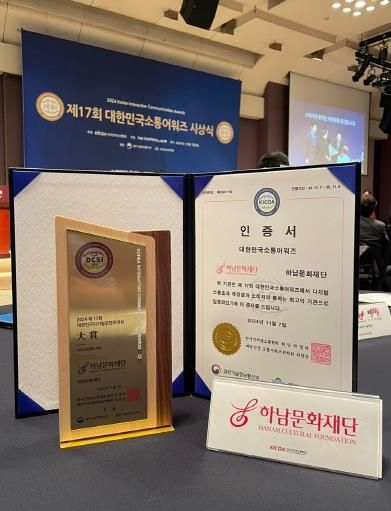 (비전21뉴스) 하남문화재단이 지난 7일 한국언론진흥재단 프레스센터에서 열린 제17회 대한민국소통어워즈에서 ‘대한민국디지털콘텐츠 시리즈콘텐츠 부문 대상’을 수상했다고 밝혔다.