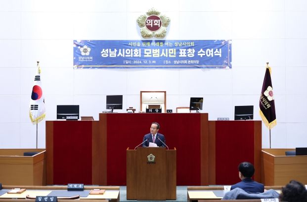 (비전21뉴스) 성남시의회는 3일 지역사회 발전을 위해 봉사한 시민들에 대한 2024년 4분기 모범시민 표창패 수여식을 의회동 2층 본회의장에서 개최했다.
