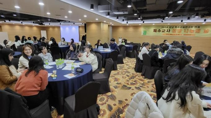 (비전21뉴스) 성남교육지원청은 12월 10일에 관내 특수교육 연구회인 그림한글 연구 분과 외 6개 분과, 특수교사 100여명을 대상으로“2024 성남 특수교육 연구회 성장 나눔의 날”을 운영한다.