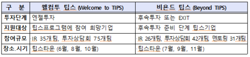 또한, 팁스프로그램을 혁신성장을 위한 대표 플랫폼으로 발돋움시키기 위해서, 유니콘 기업을 목표로 창업팀 성과를 가속화하고 사업을 지속적으로 내실화할 예정이다.