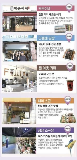 최종 선발된 힙스토어 5개 점포는 ▲다올래김밥(어린이 맞춤 전문 김밥, 분당구 판교역로) ▲덕순이네(전통떡에 대한 새로운 해석, 수정구 수정북로) ▲성남소극장(예스 키즈존, 아이들이 최고의 고객, 수정구 수정로) ▲필아웃커피(커피의 모든 것, 분당구 벌말로), ▲헤이스콘(친절 듬뿍 스콘 맛집, 분당구 야탑로)이다.