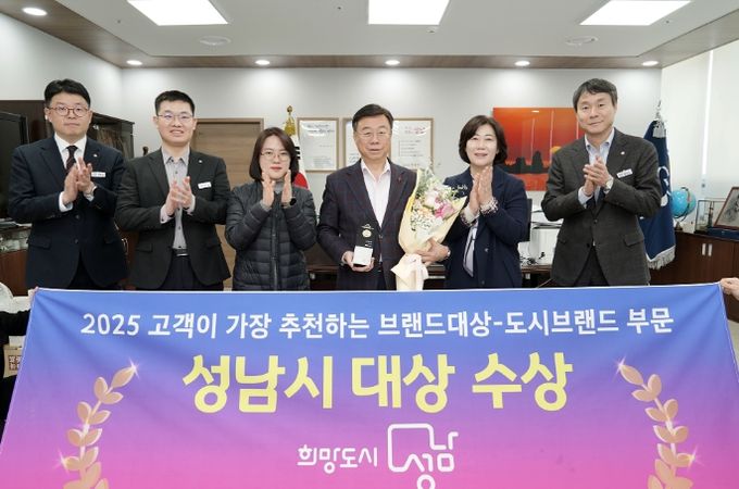 (비전21뉴스) 성남시는 7일 서울 더플라자호텔 다이아몬드홀에서 열린 ‘2025 고객이 가장 추천하는 브랜드 대상’ 시상식에서 도시브랜드 부문 ‘희망도시 성남’에 선정되어 수상했다.