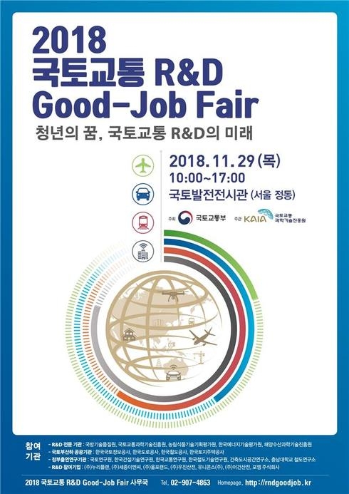 국토교통 R&D 분야의 일자리 정보를 한 곳에 모아 제공하는 이번 채용박람회는 국토교통부가 주최하고, 국토교통과학기술진흥원이 주관하는 행사로서, 한국토지주택공사, 한국도로공사, 한국철도공사, 한국국토정보공사 등 국토교통부 산하 공공기관과, 국토연구원, 한국교통연구원, 한국건설기술연구원, 한국철도기술연구원, 건축도시공간연구소 등 정부출연 연구소와 R&D 전문기관, R&D 참여기업 등 총 22개 기관이 참여하여 구직에 필요한 다양한 정보를 제공한다.