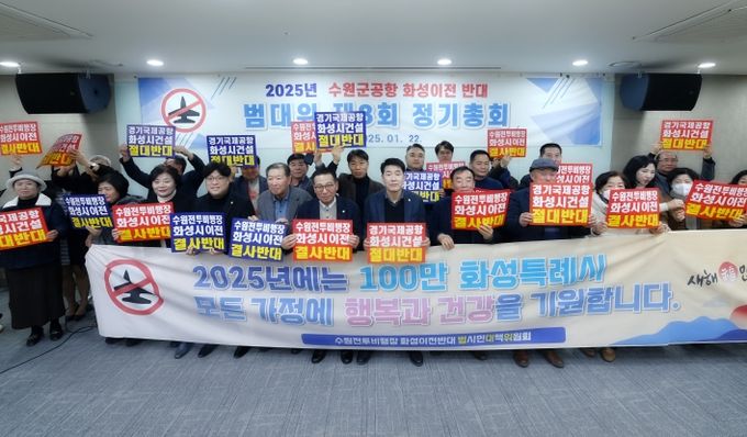 (비전21뉴스) 화성특례시의회는 22일 오후 화성 모두누림센터에서 열린 수원전투비행장 화성 이전 저지를 위한 범시민대책위원회 2025년 제8차 정기총회에 참석해 인사말을 전했다.
