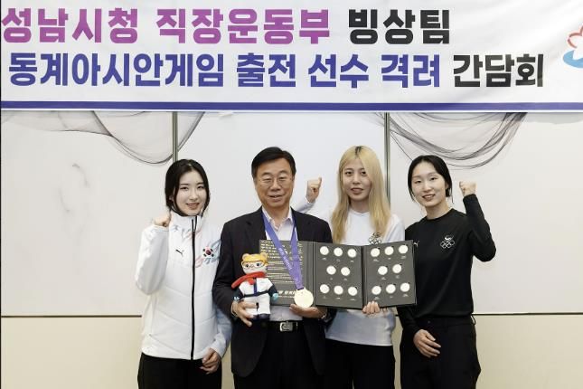 (비전21뉴스=정서영 기자) 신상진 성남시장은 제9회 동계아시안게임에서 역대 최고의 성적을 거둔 성남시청 빙상팀 최민정, 김길리, 김건희 선수와 가족을 격려하는 간담회를 열고, 앞으로도 선수들이 최고의 기량을 펼칠 수 있도록 적극적인 지원을 아끼지 않겠다고 밝혔다.
