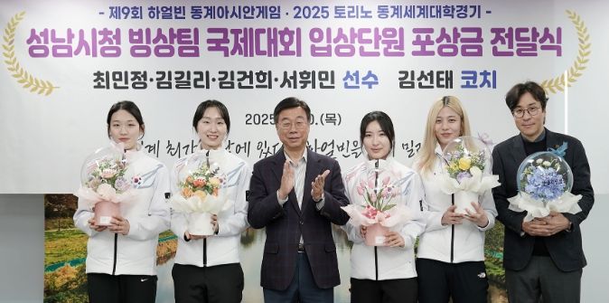 시는 2월 20일 오후 1시 20분 시청 제1회의실에서 신상진 성남시장과 두 개 대회 메달리스트인 최민정, 김길리, 김건희, 서휘민 쇼트트랙 선수, 김선태 코치 등이 참석한 가운데 ‘국제대회 입상 단원에 대한 포상금 전달식’을 진행했다.